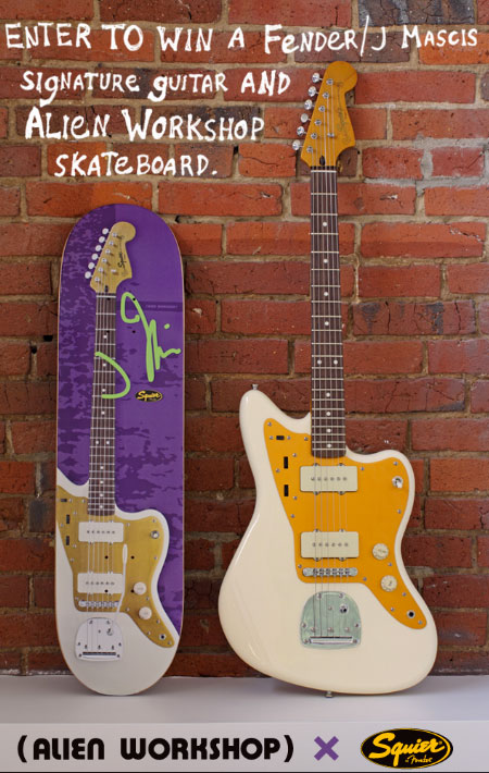 L'autore del video giudicato migliore potrà vincere una chitarra J.Mascic by Fender e la tavola da skateboard Alien Workshop coordinata. Una Limited Edition prodotta proprio per il concorso! Buon ascolto, Skateboarding, Montaggio e Fortuna!