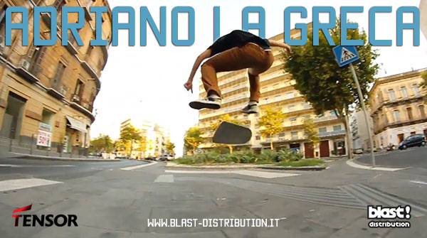 Adriano La Greca è Siciliano, un tipo taciturno e dai modi gentili, che lascia spesso siano i trick parlare in sua vece. Adriano è anche un perfezionista in costante ricerca del trick, dello spot e del landing giusto per produrre il footy ideale. Adriano da qualche mese, in realtà quasi un anno, skatea per Tensor Trucks e per lungo tempo ha lavorato a questo welcome clip... La perfezione ha il suo prezzo e noi pare sia valsa la pena di attendere. Finalmente: Welcome to the Team Adri!