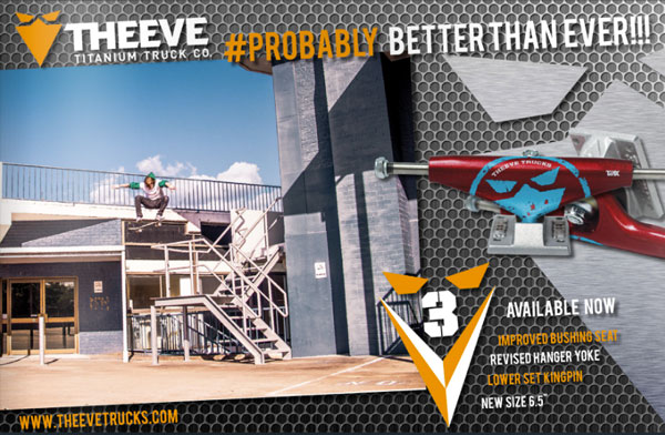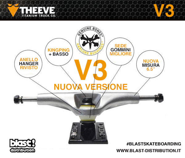 Company che ha basato il proprio successo sulla qualità di Materiali e Design dei propri prodotti THEEVE, proprio per questo, non smette MAI di sviluppare e rinnovare i propri Trucks. A distanza di 5 anni dal lancio del primo truck in Lega di Titanio il celebre Brand Australiano ha recentemente rilasciato il TERZO AGGIORNAMENTO quanto a DESIGN dei propri Truck.
