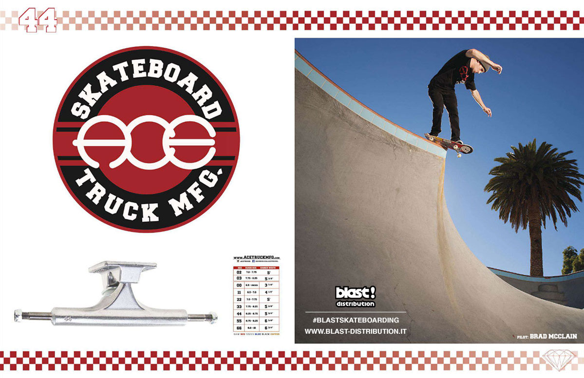 Messosi in proprio Joey a realizzato il proprio progetto concretizzando uno Skate Truck essenziale, elegante, versatile e dal design inconfondibile... In una sola parola: unico. I truck Ace sono stati uno dei primi prodotti che Blast! abbia mai distribuito, forse anche per questo motivo siamo particolarmente legati al marchio.