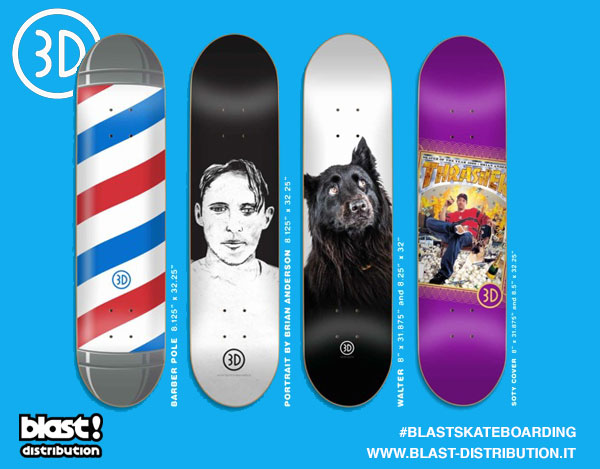 Battezata alla fine della scorsa estate, 3D Skateboards nasce dalla mente di Brian Anderson il quale, dopo 15 anni di skateboarding professionistico, ha deciso di abbandonare Girl Skateboards e fondare la propria company. Un brand dall'immagine decisamente "sulla cresta dell'onda" che annovera nel proprio team Austyn Gillette oltre allo stesso Anderson
