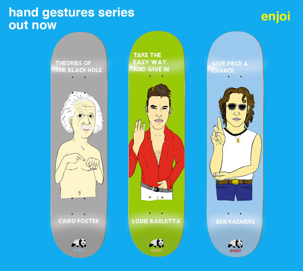 La grafiche delle Hand Gestures sono alcune tra le migliori uscite ultimamente per Enjoi Skateboards. Benchè in stock non ne siano rimaste molte ci faceva piacere condividere con voi questo video che vi da qualche nozione in più dell'artista che c'è dietro la grafica: Thom Lessner