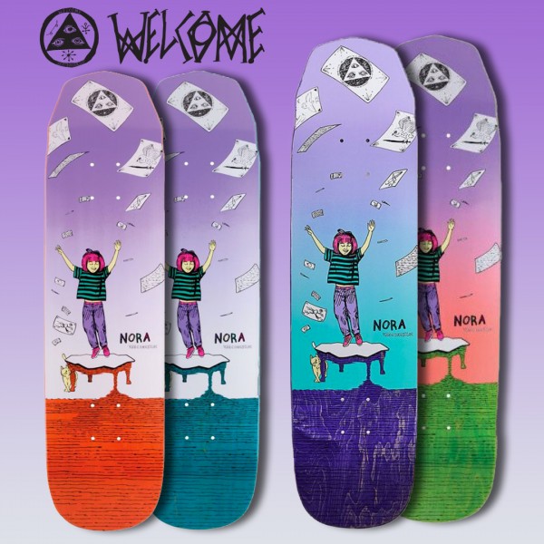 WELCOME SKATEBOARDS propone una linea di tavole dal nome "Magilda" tutta dedicata a Nora! Disponibile nella versione "Wicked Princess" 8.125" e nella versione "Wicked Mini" 7.6", entrambe in due colorazioni differenti che sfumano al color Lavanda.
