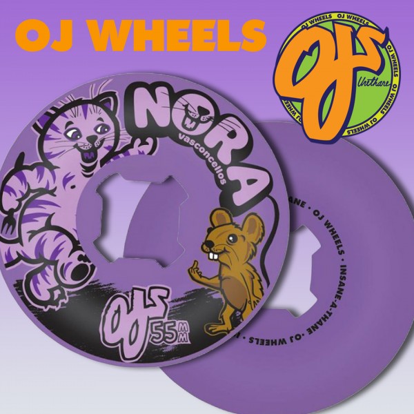 Le OJ WHEELS ”Cat and Mouse” Insaneathane 55mm ,101a Pro Model di Nora sono dolci e accattivanti ma sicuramente un'ottima ruota sotto tutti gli aspetti, soprattutto per chi skate molto in park.